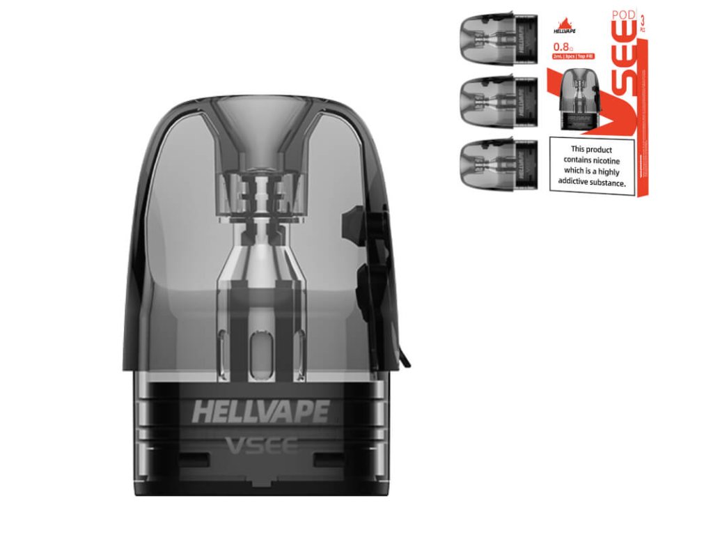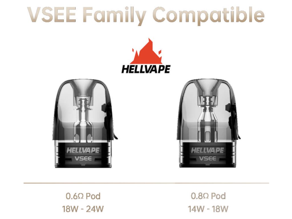 VSEE TOP FILL POD CARTRIDGE s objemom 2ml (TPD), určená pre štýl vapovania MTL/RDL a to pre elektronické cigarety značky Hellvape, konkrétne pre sériu HELLVAPE VSEE. Vstavané žeraviace hlavy majú odpor 0,6Ω, alebo 0,8Ω a keďže sú v kazete pevne zabudované, nie sú vymeniteľné.