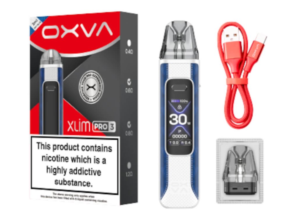 OXVA XLIM PRO 3 ZOSTAVA je zostavou elektronickej cigarety typu POD SYSTEM s nastaviteľným výkonom 5-30W. Je vhodná pre poťahovanie štýlom MTL/RDL/DTL, využívajúc XLIM TOP FILL POD CARTRIDGE s objemom 2ml(v balení)/3ml so vstavanými cievkami s odpormi 0,4Ω, 0,6Ω, 0,8Ω alebo 1,2Ω. Disponuje 1,05" FAREBNÝM HD DISPLEJOM a ako zdroj energie využíva vstavanú batériu s kapacitou 1500mAh, ktorú viete nabíjať pomocou rýchleho nabíjania cez moderný USB-C port (5V/2A).